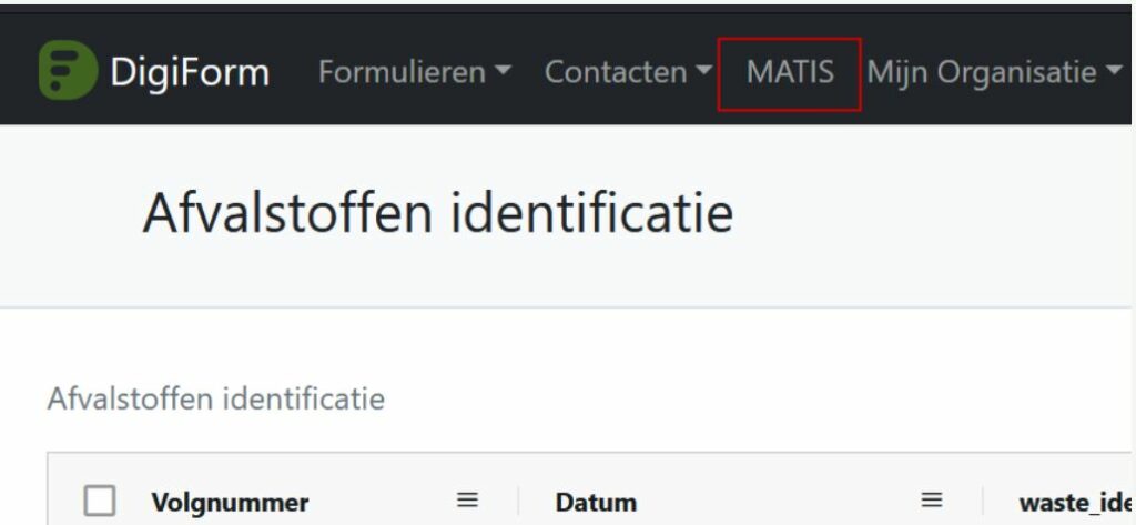 - Let op: je vult hier jouw matis login gegevens in, niet die van de DigiForm applicatie, die je ontvangt van OVAM door een aanvraag te doen via het contactformulier van MATIS van OVAM